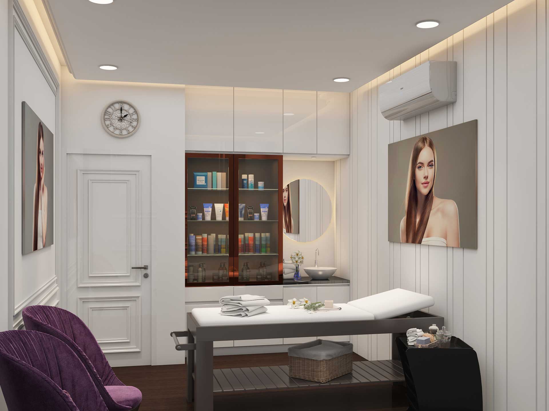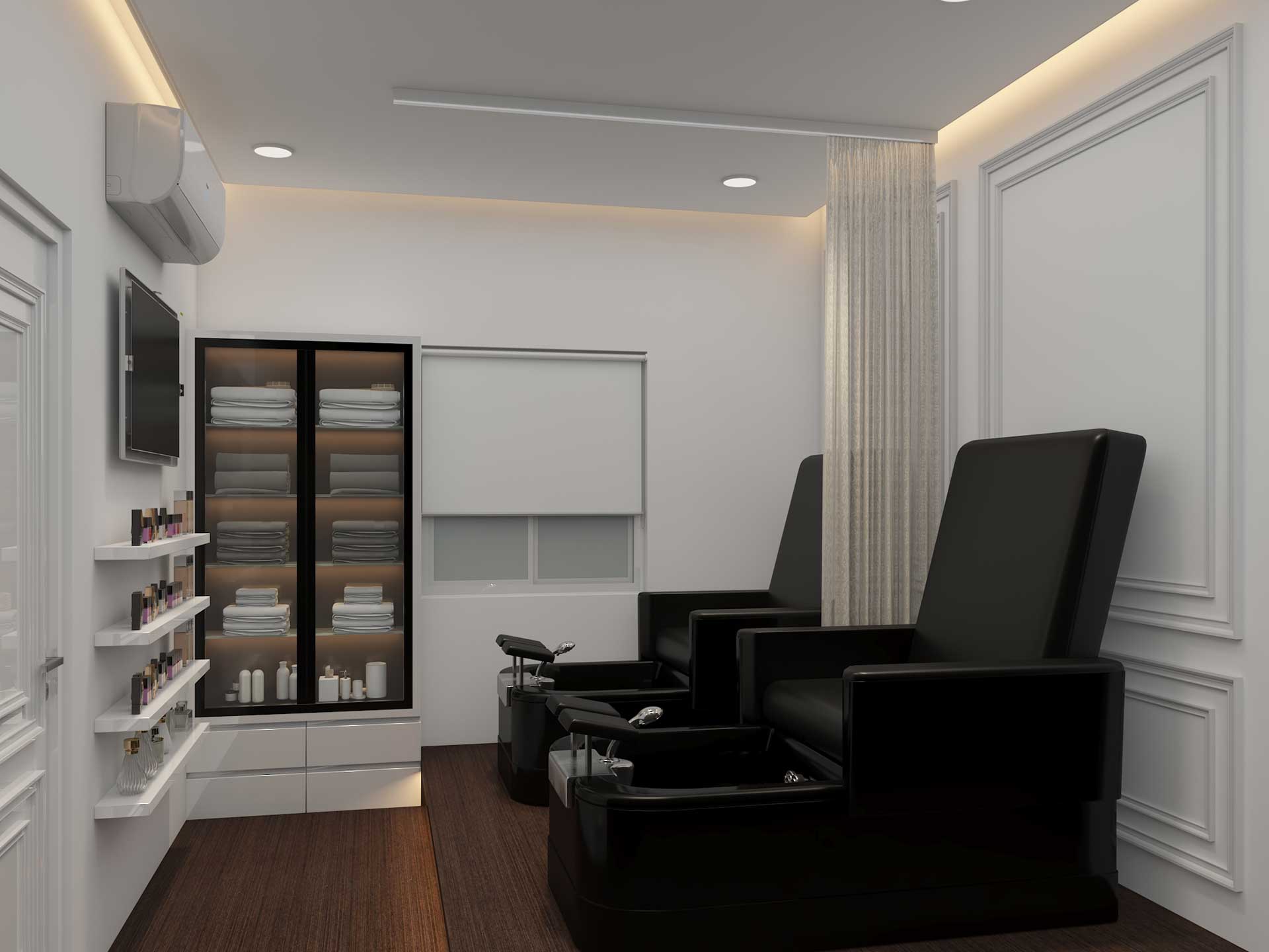 This room is a calm, appealing, and relaxed zone because of its colour scheme, luxurious chair, and dedicated staff.