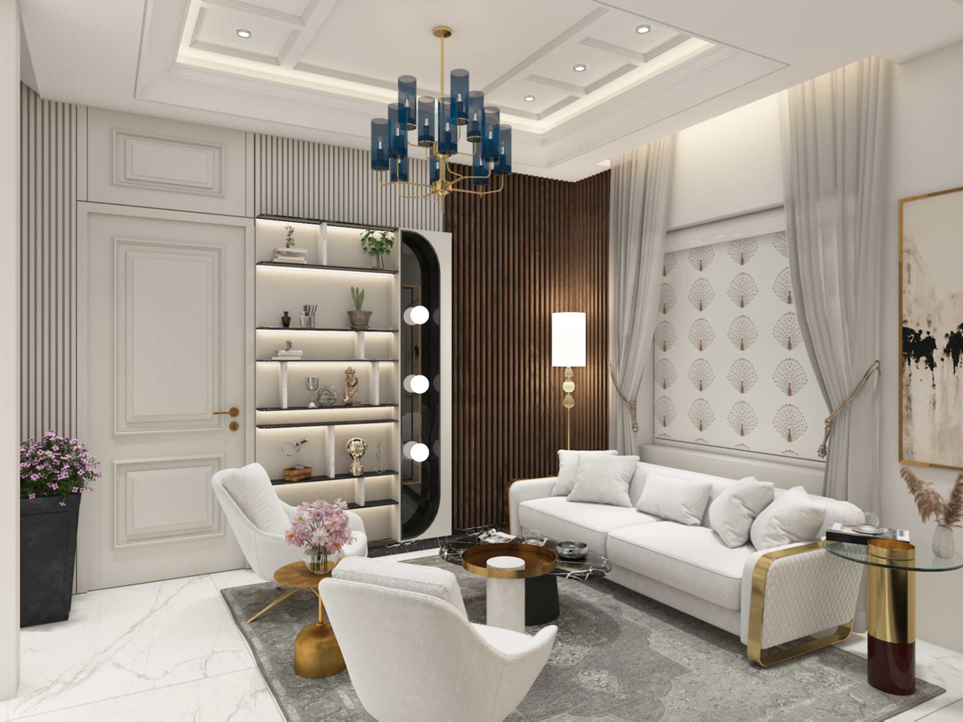 This space is perfect mix of panels, palette and design. The detailed ceiling and doors along with contemporary sophisticated lighting, cushy furniture, gold accents and customised roman blinds make up the perfect luxury family room.