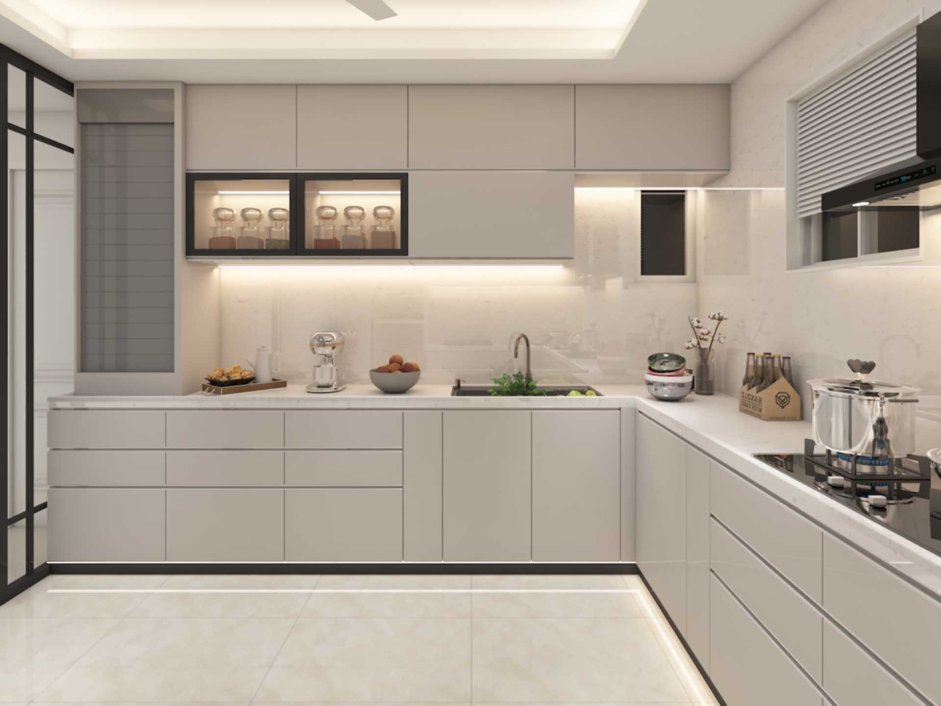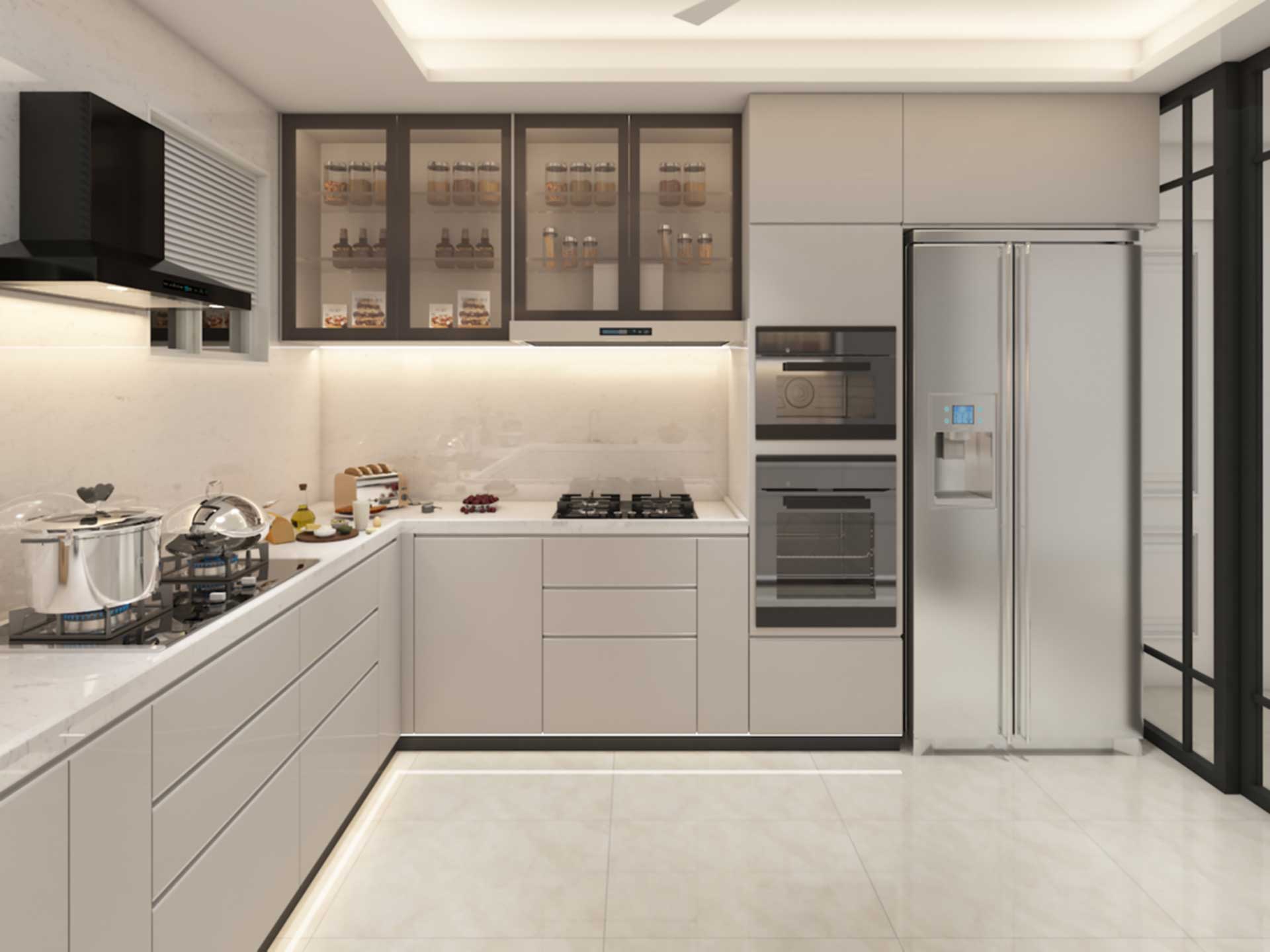 TheU- shaped kitchen has been designed to fit state-of-art appliances for the clients’ passion for cooking and hosting.